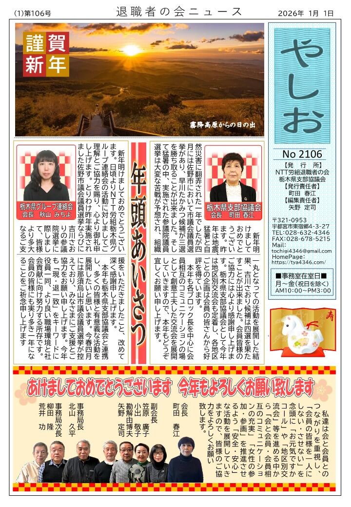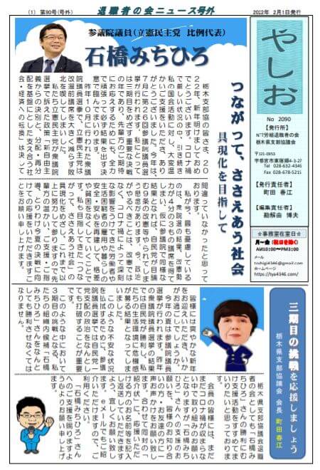 機関紙「やしお」 2025.12.13 2021.01.11画像をクリックで全ページ(PDF)が起動します。最新号 やしお106号 2026.1月1日号やしお103号2025.4月1日号やしお号外2025.2月号やしお102号2025.1月号バックナンバー2024年・新年号・4月号・7月号・10月号2023年・新年号 ・4月号・7月号・10月号(50周年記念号)2022年・新年号 ・2月号外・4月号・6月号・9月号2021年・新年号 ・4月号・7月号・10月号2020年・新年号・4月号・7月号